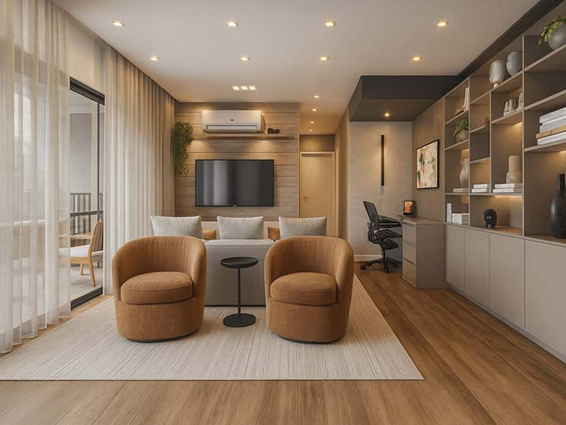 Desenvolvemos o projeto completo de interiores, do conceito ao detalhamento executivo, para transformar o imóvel em um lar funcional, harmônico e cheio de personalidade.